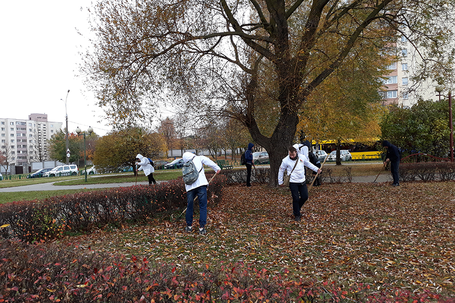 Делом долга и чести считают члены Фрунзенской организации г.Минска РОО «Белая Русь» содержать в достойном состоянии территорию вокруг памятника. А 23 октября ко взрослым присоединилась и молодежь - учащиеся УО «Государственный профессионально-технический колледж хлебопечения».