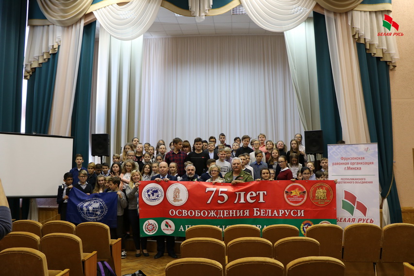 Фрунзенская районная «Белая Русь» вместе с первичными организациями нашего общественного объединения и учреждениями образования всегда большое внимание уделяла патриотическому воспитанию. Председатель Фрунзенской «Белой Руси» Игорь Тимашишин отметил, что неспроста в этой школе, к примеру, открыт музей имени Бурдейного — его корпус первым вошел в Минск при освобождении. Книгу о тех событиях, специально созданный в рамках акции «Беларусь помнит» плакат на тему белорусской стратегической наступательной операции «Багратион», где показано, кто и когда командовал наступлением, когда и какой город был освобожден, какие силы противостояли, выводы, а также книгу с рисунками школьников на тему Великой Отечественной Игорь Тимашишин подарил гостям из России.
