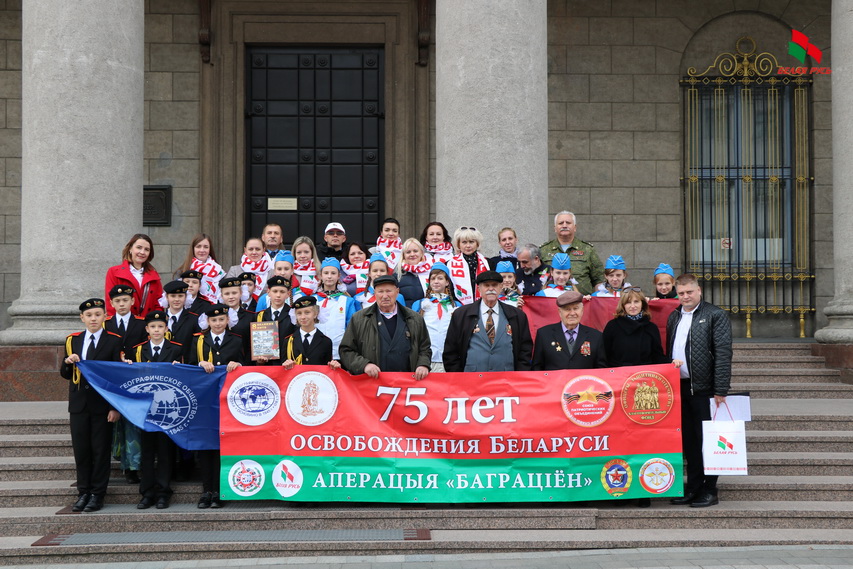 Автопробег в честь 75-й годовщины освобождения Беларуси от немецко-фашистских захватчиков и 75-летия операции «Багратион» организовали писатель-документалист, член творческого объединения «Отчизна» Российского союза ветеранов, майор в отставке Сергея Полонский, офицер Главного управления Генерального штаба РФ, автор-исполнитель патриотических песен, создатель ансамбля «Трассера» Валерий Матвеев, полковник в отставке, вице-президент общественной организации «Память Поколений — Поле воинской славы Отечества» Николай Соболев. Стартовали из Москвы 10 сентября и уже на следующий день представляли книгу в Витебске. В Минск, 16-ю точку на карте, они приехали из Бреста. Одними из первых в столице их принимала Фрунзенская районная «Белая Русь».