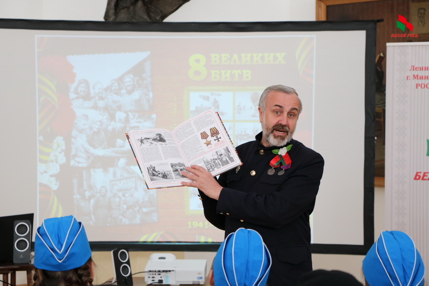 Ну а минские школьники, пионеры и кадеты получили несколько экземпляров книги «8 Великих битв» — их можно будет взять почитать в библиотеках нескольких минских учреждений образования.