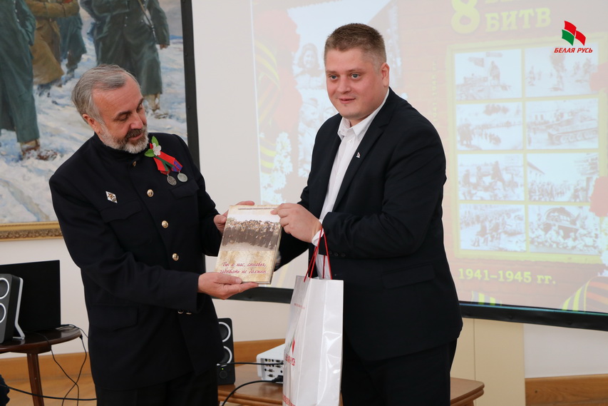 «Спасибо за вашу работу, которую вы проводите. Мы тоже в рамках нашей акции «Беларусь помнит» вспоминаем наших героев, которые воевали и освобождали нашу большую страну. Нашу белорусскую землю», — отметил председатель Ленинской «Белой Руси» Алексей Сегалович. Гостям он подарил книгу о событиях военных лет и сувениры.